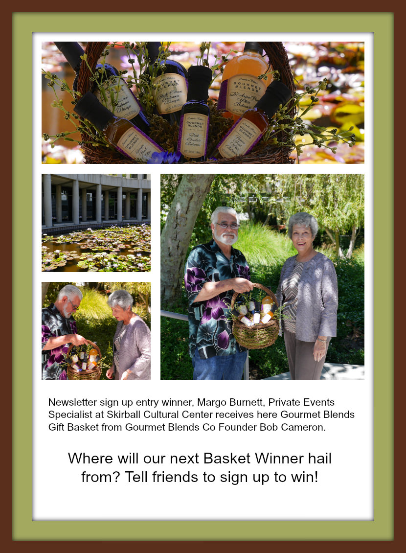 Gourmet Blends Newsletter Subscriber Balsamic Vinegar Basket Winner Published October 27, 2014 at 830 × 1130 in Sign Up for our VIP Newsletter and Win!